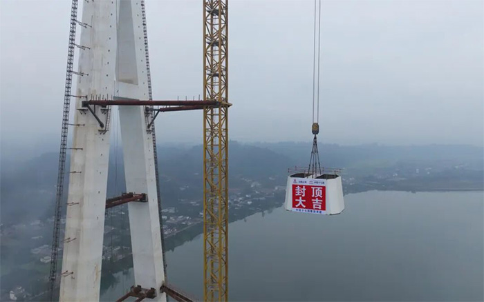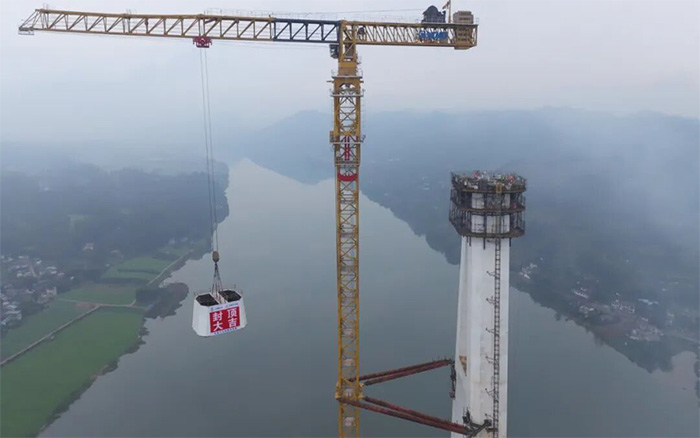 湖岷江特大橋主塔采用六邊形箱型截面,結(jié)構(gòu)復(fù)雜,高空作業(yè)安全風險大,XGT2850-120S為大橋模塊化拼裝提供了關(guān)鍵支撐。