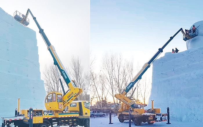 從松花江畔到齊齊哈爾,徐工高空作業(yè)車的身影穿梭在東北的冰雪之中。正是有了它的保駕護(hù)航,巨型雪人如期與游客見面,為火爆的東北旅游再添一把“熱柴”。