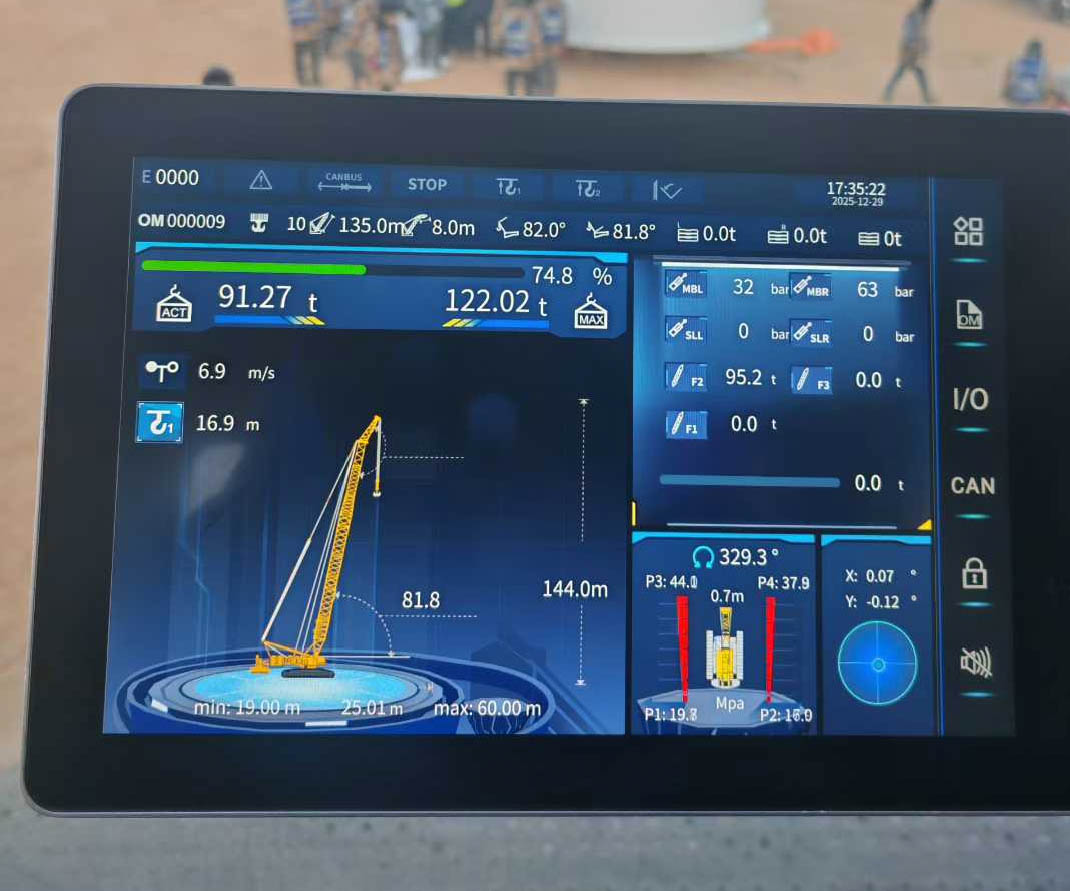 主臂高升、回轉(zhuǎn)、對位一步步推進(jìn)。XLC18000M以135+8m標(biāo)準(zhǔn)工況,將塔筒平穩(wěn)提升至數(shù)米高空,與基礎(chǔ)節(jié)實(shí)現(xiàn)精準(zhǔn)對接。風(fēng)吹沙走,設(shè)備穩(wěn)如磐石,動作精準(zhǔn)流暢,整個過程有條不紊。