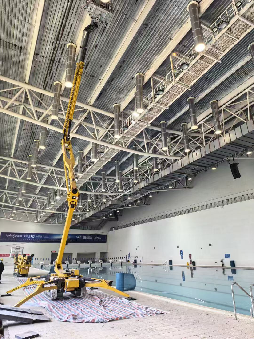 該設(shè)備采用履帶式底盤,自重4.6噸,接地比壓小,完美適配泳池低承重及地面保護(hù)作業(yè);車寬僅0.99m,可靈活穿梭狹窄通道,通行無(wú)阻;工作幅度可達(dá)15m,無(wú)需頻繁起降,省時(shí)高效,到場(chǎng)即可開(kāi)工,此次施工僅配置3臺(tái)設(shè)備和10名操作人員,便能高效推進(jìn)任務(wù),在保障工程質(zhì)量的同時(shí)顯著縮短了工期,實(shí)現(xiàn)了效率與成本的雙重優(yōu)化。