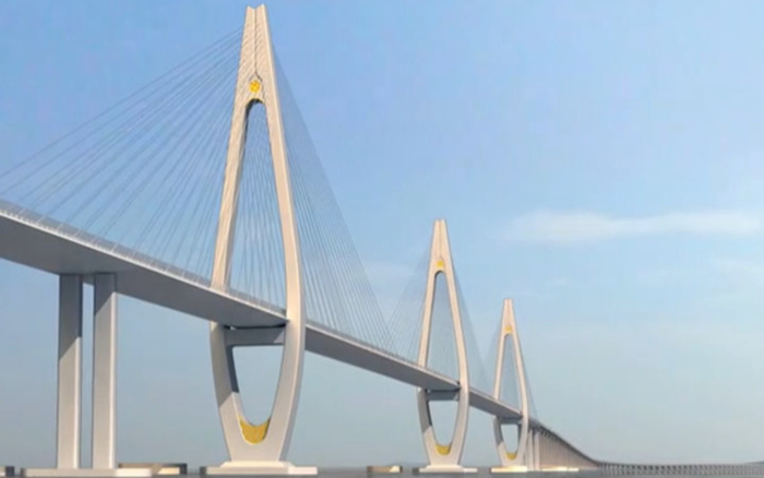舟岱跨海大橋是寧波舟山港主通道項(xiàng)目最重要的控制性工程,橋型構(gòu)造為三塔雙索面鋼箱梁斜拉橋,全長(zhǎng)1630米,其跨徑組合為國(guó)內(nèi)跨海大橋之最。項(xiàng)目全線貫通后,將與既有的舟山跨海大橋連接,成為世界上最長(zhǎng)的連島高速公路和世界上規(guī)模最大的跨海橋梁集群。