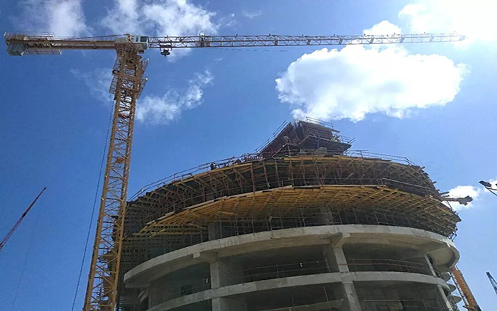 由于施工空間較小,經(jīng)充分考量后,采用了8臺 XGTT200A(7015L-10)徐工塔機(jī)產(chǎn)品。該型號塔機(jī),空間干涉小,且配備了無線防碰撞系統(tǒng),確保各塔機(jī)之間協(xié)調(diào)工作,互不干涉,工作效率大大提高,有效保證了項目的高效進(jìn)行。